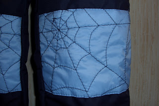 На лямках полукомбинезона эластичная лента с изображением человека - паука, на локтях и коленках расположилась апликация паутины.На бегунках шнур для удобства растёгивания в варежках.